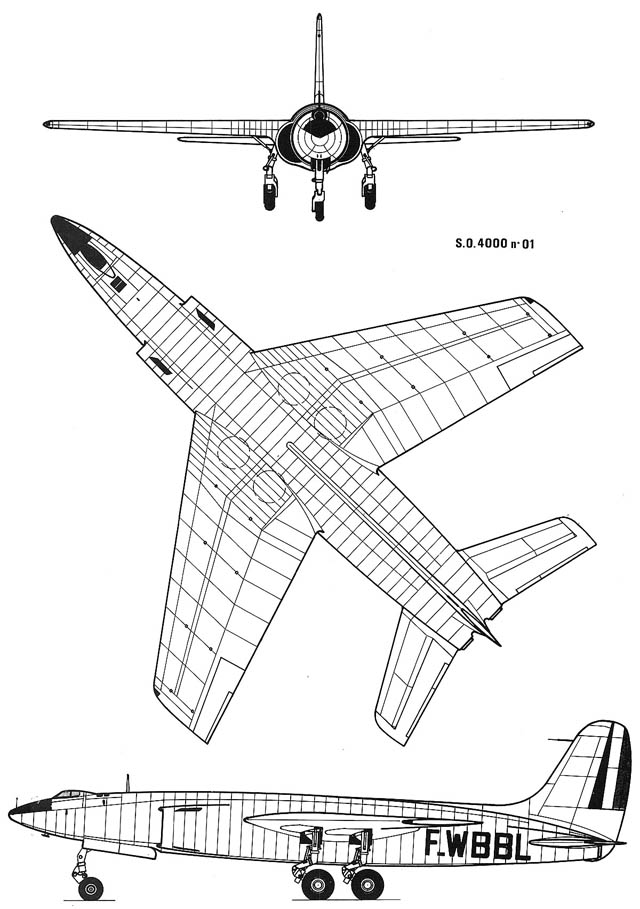 Als die S.O.4000 Anfang 1951 endlich fertig gestellt war, erhielt die Maschine die offizielle Kennung F-WBBL und begann mit der Bodenerprobung. Gleichzeitig stellte man aber fest, dass sie viel zu schwer geworden war und die beiden Nene 102 Triebwerk für diesen Koloss einfach zu schwach waren. Außerdem war die technische Entwicklung im Strahlbomberbau in den vergangenen fünf Jahren enorm fortgeschritten, so dass die Maschine bereits völlig veraltet war, sowohl im Anforderungsprofil als auch in den Leistungen, bevor sie sich in die Luft erhob. Um wenigstens die Flugfähigkeit zu demonstrieren, startete der Chefpilot von SNCASO, Jaques Guinard am 16. März 1951 zum Erstflug, dieser dauerte gut 30 Minuten und verlief zufriedenstellend. Danach wurde das Flugzeug eingemottet und flog nie mehr. Mitte der 1950iger Jahre wurde es dann stillschweigend verschrottet. Die beim Bau gesammelten Erfahrungen flossen zum größten Teil in die Entwicklung der erfolgreichen S.O.4050 Vautour II ein.