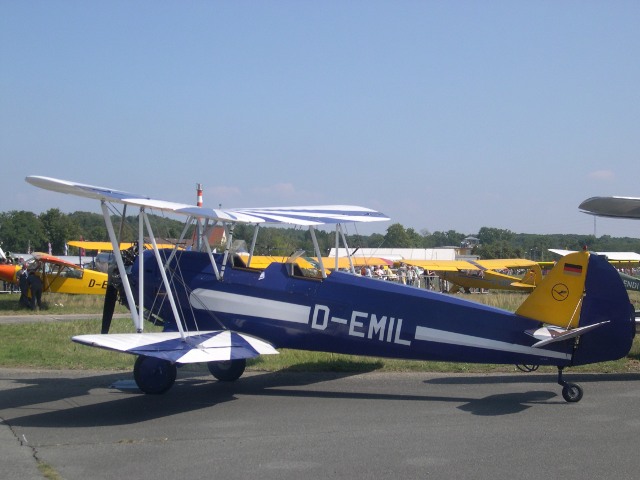 Die nächsten Gäste schweben ein, wieder sind es Messerschmitt Bf 108, die Traditionsmaschine der Lufthansa, die „Elly Beinhorn“ und die im strahlenden Messerschmitt-blau leuchtende Maschine aus Bad Nauheim, für mich die schönste 108, weil sie das ist, was sie eigentlich sein sollte, ein zeitlos elegantes Reiseflugzeug. Und das, obwohl die „alte Dame“ schon 62 Jahre auf dem Buckel hat. Es wird wieder unruhig, die Ju hat abgehoben und ein neuer Besucher nähert sich im langsamen Sinkflug der Landebahn. Er scheint förmlich in der Luft zu stehen, dann setzt er auf und nach 50 m hat er bereits ausgerollt. Der Fieseler Storch hat wieder einmal gezeigt, was STOL wirklich bedeutet. Ich lasse mich in der Menschenmenge treiben, es müssen Tausende sein.