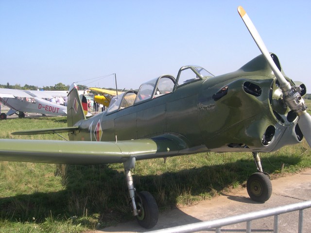Ich gehe weiter zu den abgestellten Maschinen, die fast alle noch in die Luft gehen werden, drei Focke Wulf Fw 44 Stieglitz sehe ich, die Bücker-Familie zählt gut das Vierfache, zwei de Havilland Tiger Moth, und zwei Udet U-12 „Flamingo“, eine Yak-18, eine Messerschmitt M17 mit Originalmotor, sonst ein Nachbau für die Messerschmitt-Stiftung, eine eher seltene ERCO 415 D, eine Grob G109, eine Cessna „Caravan“, mehrere Piper pA-18, eine Zlin 526, ein Sikorsky S58 und ich bin noch längst nicht am Ende. Bei der Me 163 verweile ich länger. Hier ist sie nur als großartiger Segler zu sehen, die Gleitzahl soll bei über 25 liegen. Auf den Einbau eines Walther Raketenmotors hat man wohlweislich verzichtet. Die Maschine sieht elegant und modern aus. Die meisten Zuschauer wissen nichts damit anzufangen und tippen auf ein Modell aus irgendeinem Fantasy-Film.